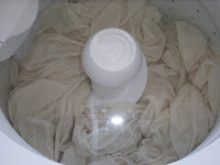 Descobri no fundo do armário umas capas para os sofás da sala que eu tinha comprado da minha cunhada muito tempo atrás… As ditas cujas eram bege – argh! vocês já sabem que eu não gosto nem um pouco de bege…é o branco para quem tem medo de deixar transparecer o sujo, mas no final é a verdadeira cor da sujeira. Aí, não tive dúvida. Muita cândida e lava que lava na máquina de lavar.
