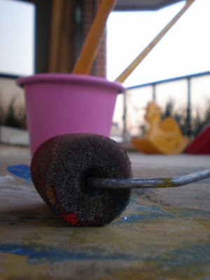 Eu e a pequena fizemos “atelier” em um papelão da embalagem das “poltronas do jô”. Divertidíssimo.