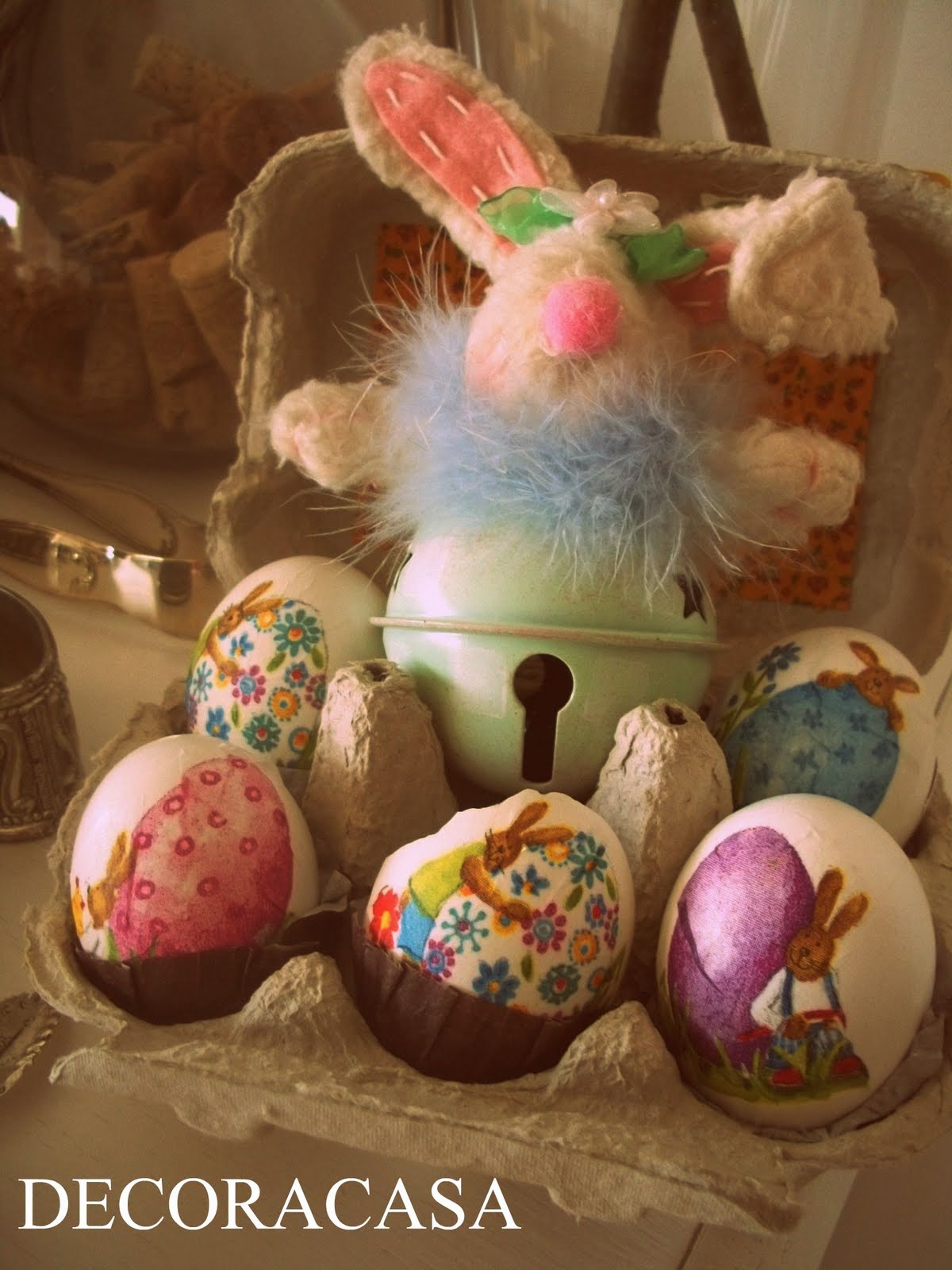 os ovinhos adicionais ficaram em uma caixinha, ao pé dela com minha coelha de echarpe!