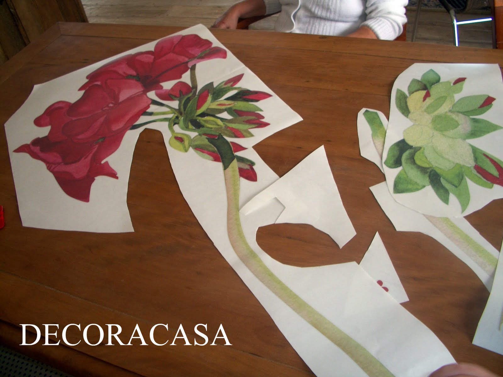 - Terminada toda a fixação do adesivo com a espátula, segue a retirada da máscara. Seguindo as instruções ela deve ser tirada na “diagonal” da imagem. Não foi difícil, mas também fiz tudo bem devagar. Segui os mesmos passos para completar o caule da flor grande e a aplicação do gerânio menor.