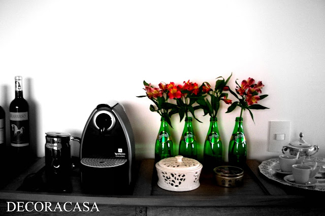 Usar garrafas como vaso não é nenhuma novidade – eu mesma já mostrei isto aqui – mas toda vez que abro mão deste recurso fico encantada com o resultado.Beijoca