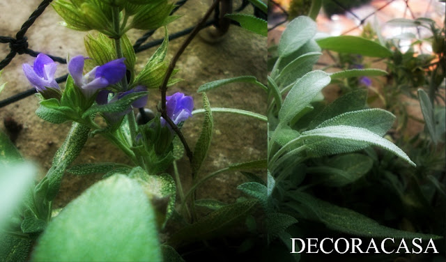 As pequenas flores roxinhas da sálvia lá da floreira.Porque eu moro em uma fazenda imaginária localizada no vigésimo andar.Beijoca