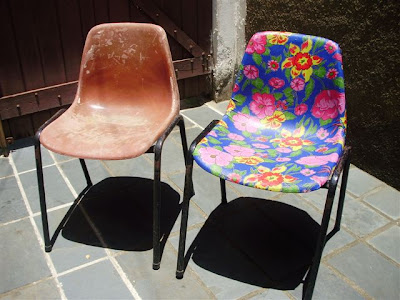 O Carlos passou por este processo e também me mandou as fotos, que publiquei aqui. Para rever o vídeo de passo a passo (PAP) de como forrar uma cadeira com chita, clique aqui