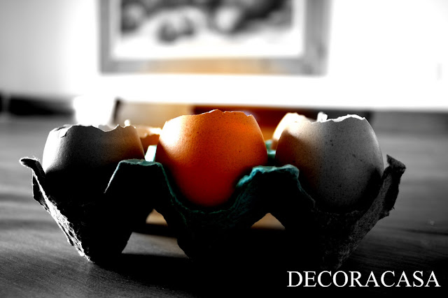 Seis cascas de ovos quebradas em uma bandejinha.Puro charme?O que tem dentro?