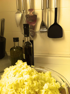 Descasque e cozinhe as batatas com sal e um pouco do alecrim até elas ficaram moles.