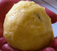 Molhe as mãos e pegue um pouco da massa manuseando-a até forma uma bolinha do tamanho de uma maçã.