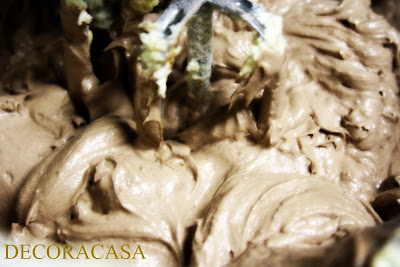 Bata o açúcar e a manteiga. Misture os ovos e bata. Adicione a farinha, batendo e, por último, o achocolatado. A massa fica bem grossa mesmo.