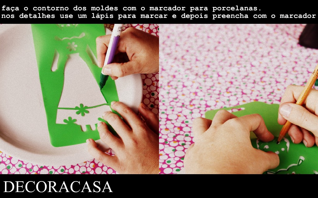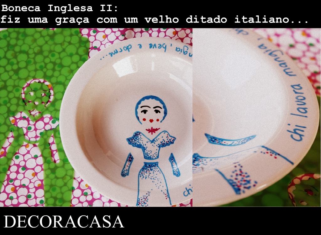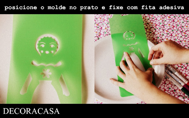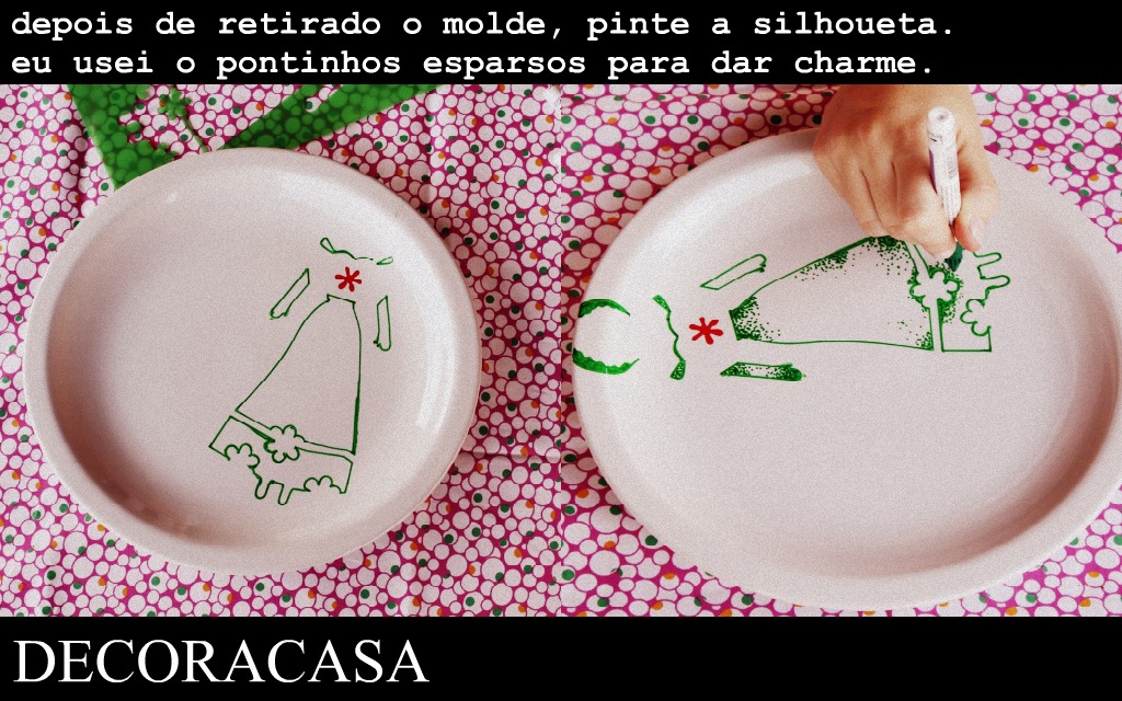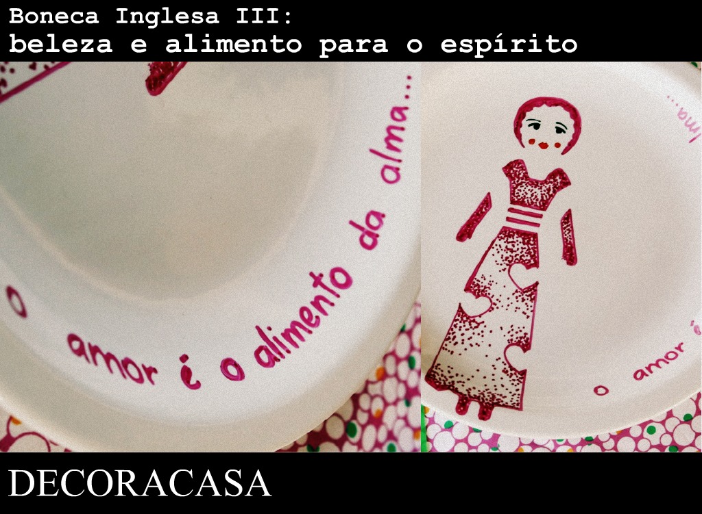 Para este prato eu usei o molde da Boneca Inglesa I. Mas, como eu já contei, me animei tanto que fiz mais três pratos: