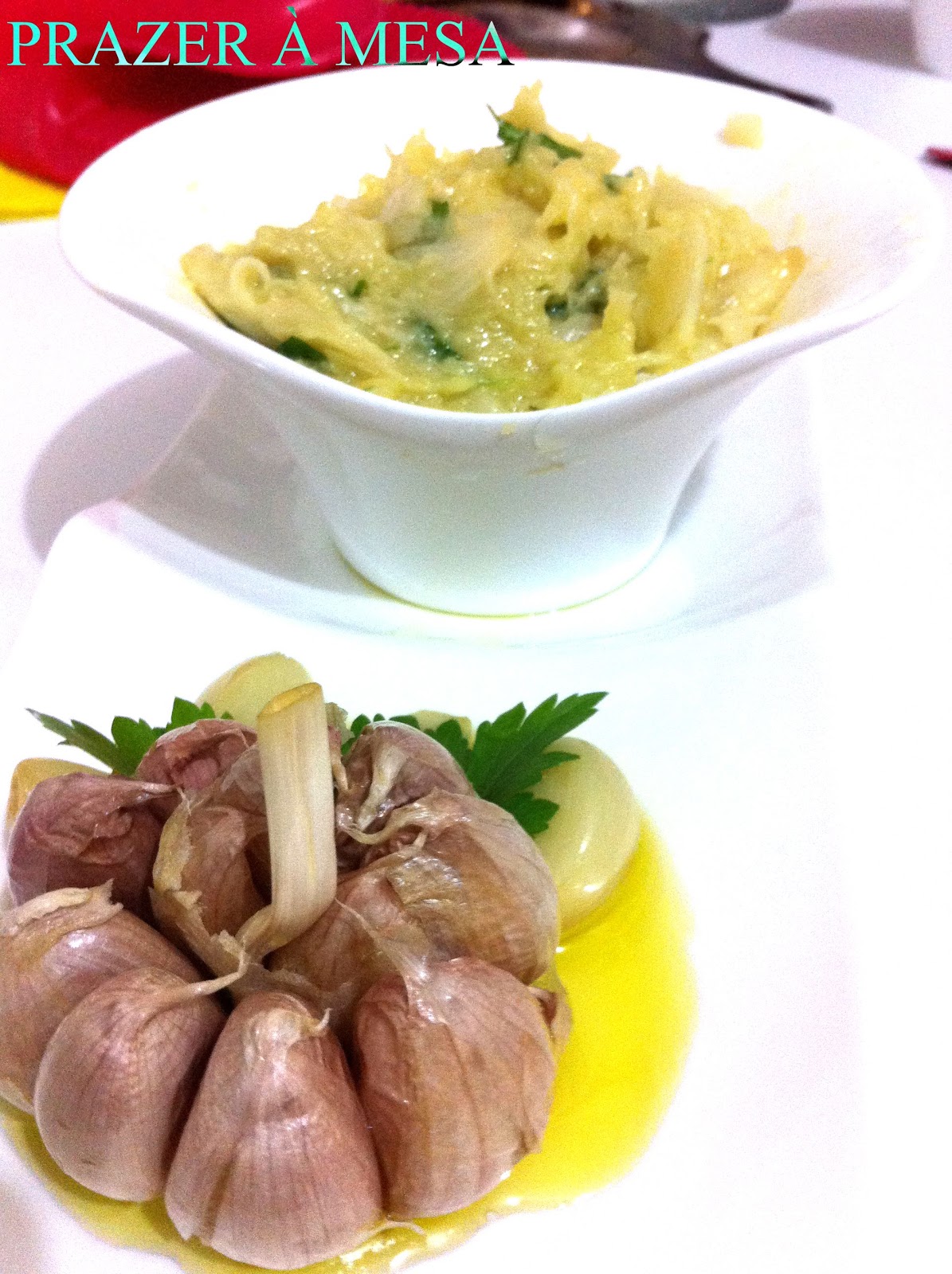 Durante o tempo de cozimento, os dentes de alho viram um delicioso purê aromatizado com azeite. Basta abrir as cascas e colocar o conteúdo em um potinho misturando um pouco de salsinha e sal para temperar.