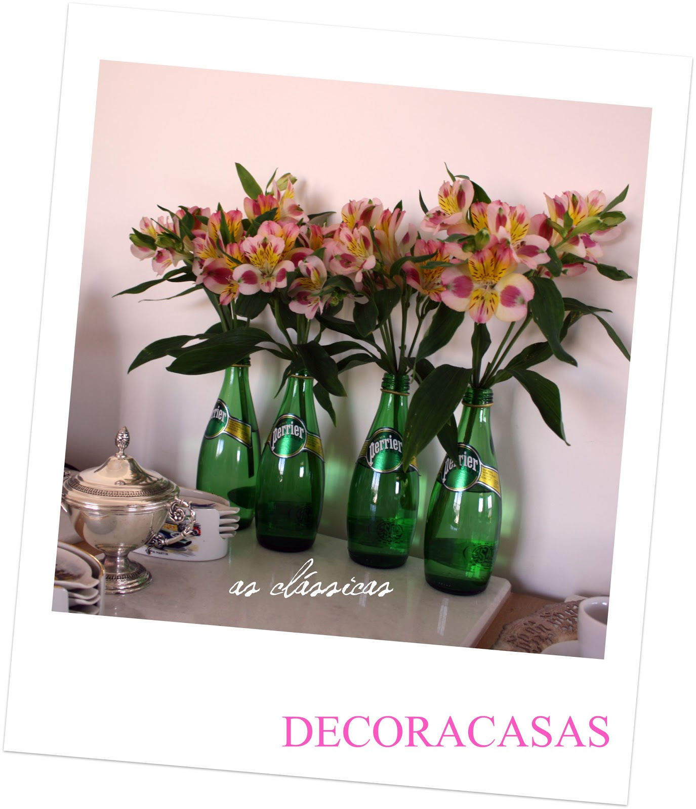Semana passada tive um acesso consumista floral: as astromélias estavam com um preço legal e trouxe três maços para casa. O resultado foram as garrafas floridas espalhadas por todos os cantos, dando um toque feliz à minha casa e seus moradores.